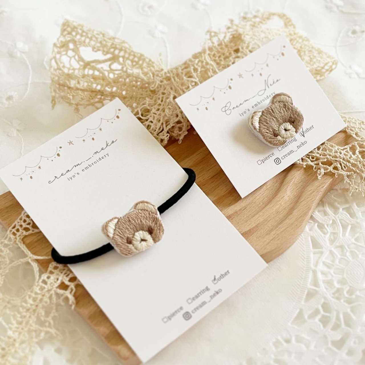 くまちゃんの刺繍ヘアゴム/ピンズ
