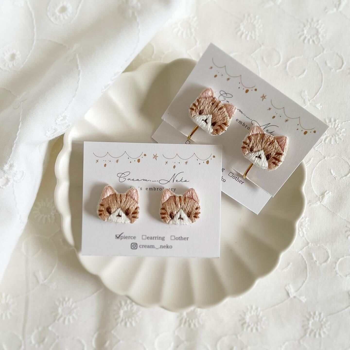 【うちの子刺繍】猫ちゃんの刺繍ピアス/イヤリング